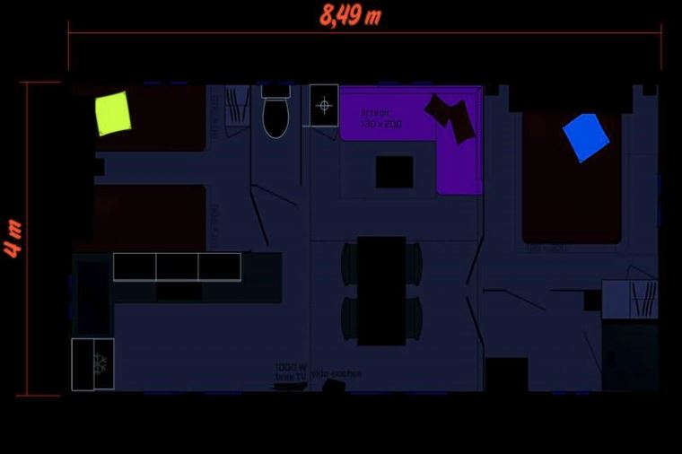 Coin nuit : Une chambre avec 1 lit double (160×200), une chambre avec 2 lits simples (90×190) côte à côte, oreillers et couvertures et/ou couettes fournis.